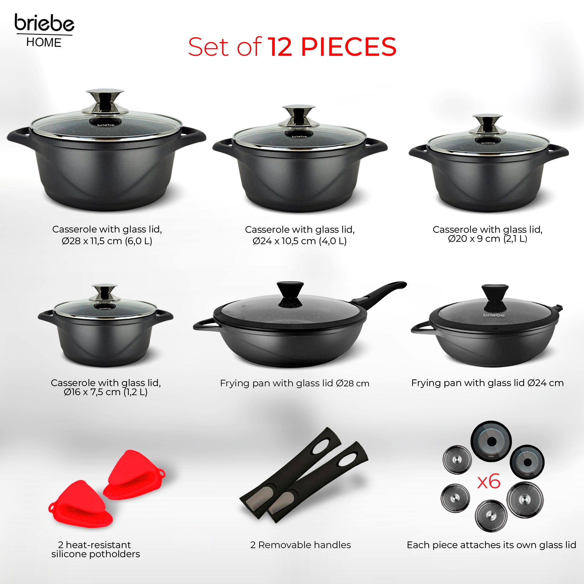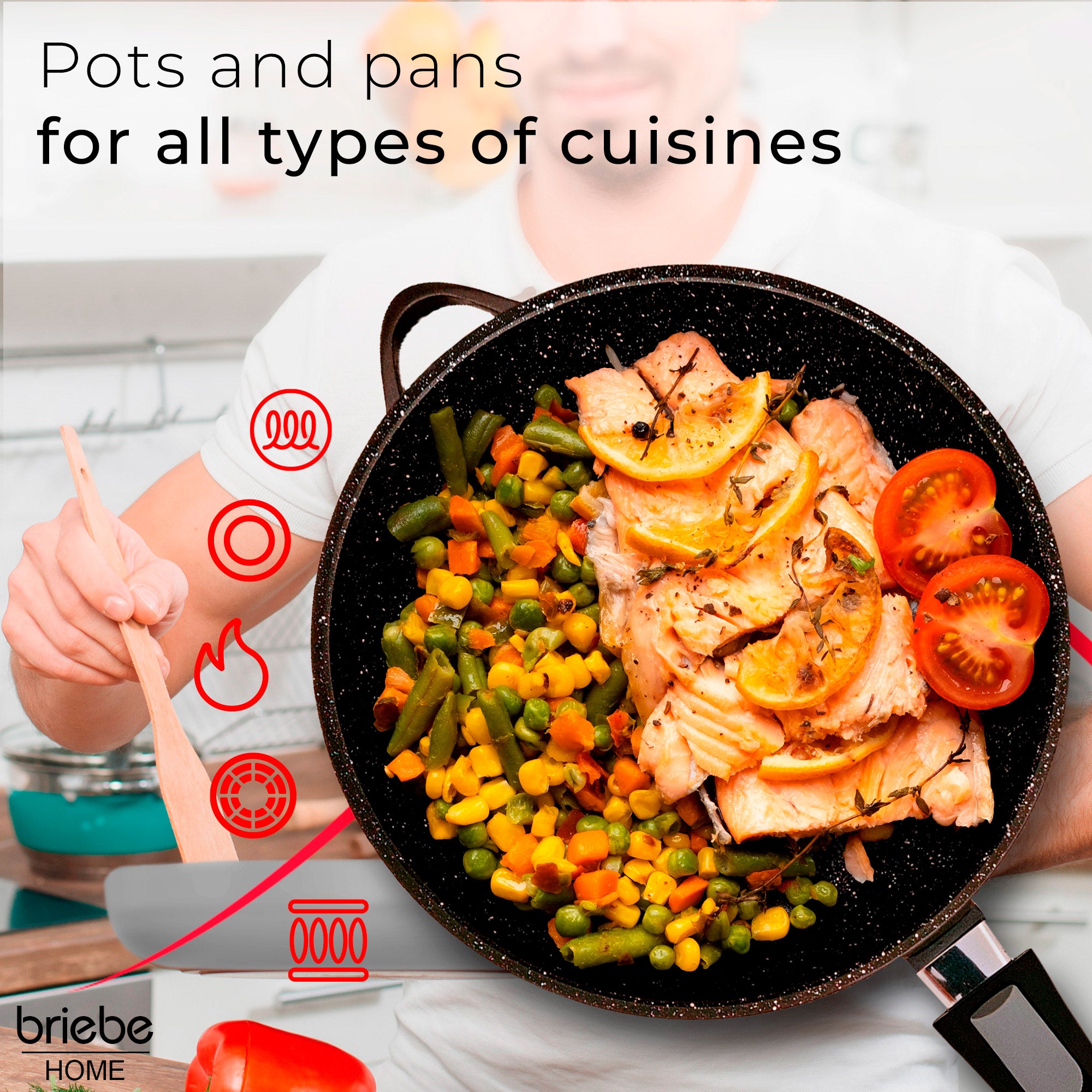 Disfruta cada día innovando en la cocina o cocinando las recetas más tradicionales con el juego de cazuelas y sartenes briebe MGK-1219 que te ofrece la posibilidad de cocinar de manera saludable y eficiente en cualquier tipo de cocina o incluso en horno. Es la elección perfecta para los amantes de la buena comida ya que une calidad y funcionalidad cocinando con ellas todo sabe mejor.