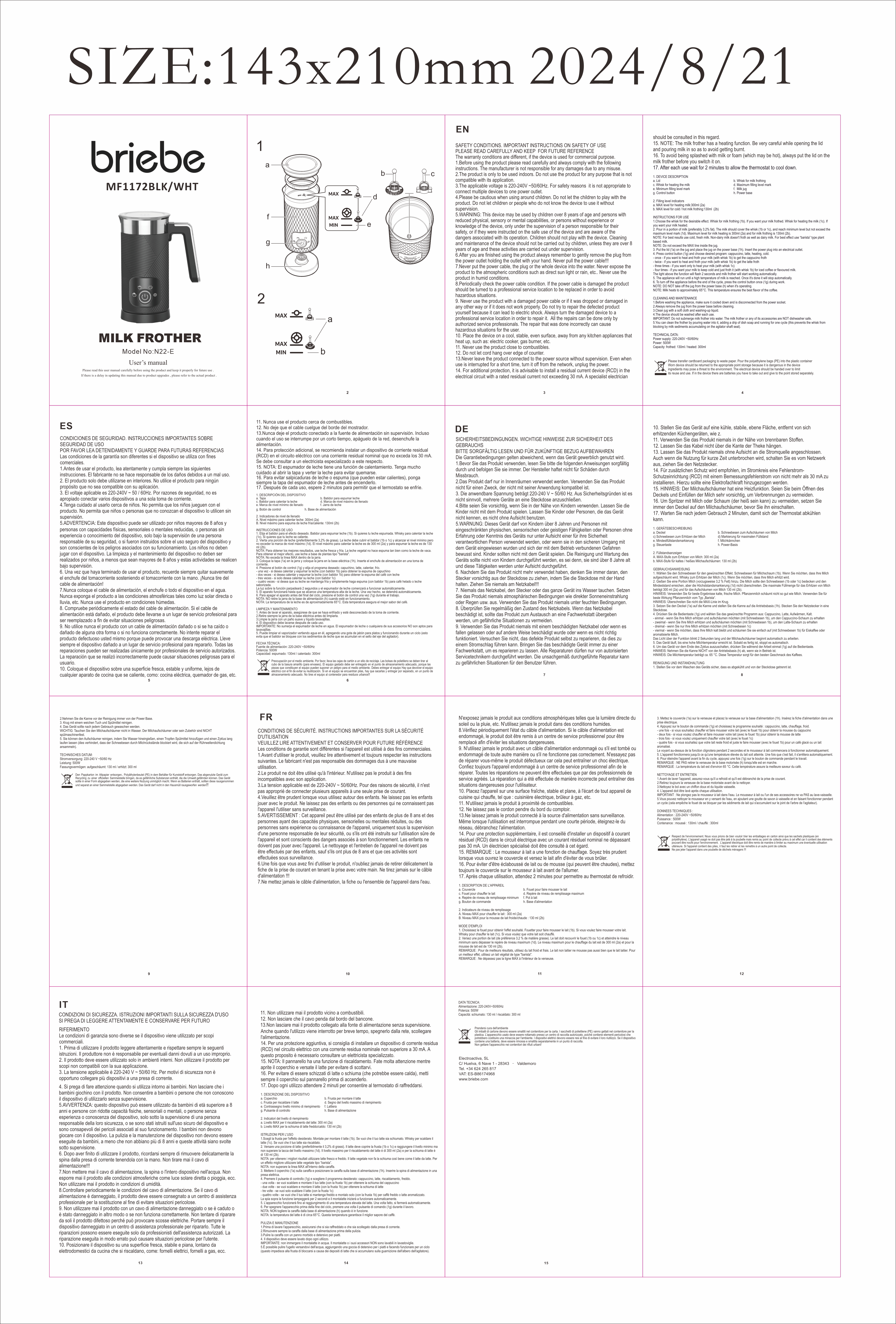Interior de acero inoxidable de grado alimenticio, libre de BPA. La jarra tiene en su interior una marca de llenado máximo para hacer espuma hasta los 130 ml de leche. La capacidad máxima cuando se trata de calentar leche es de 300 ml, como indica la marca de nivel, para evitar desbordamientos y garantizar la cantidad perfecta en cada preparación. Dispone de 2 batidores intercambiables, uno se utiliza para espumar la leche y el otro cuando solo quieres calentarla.