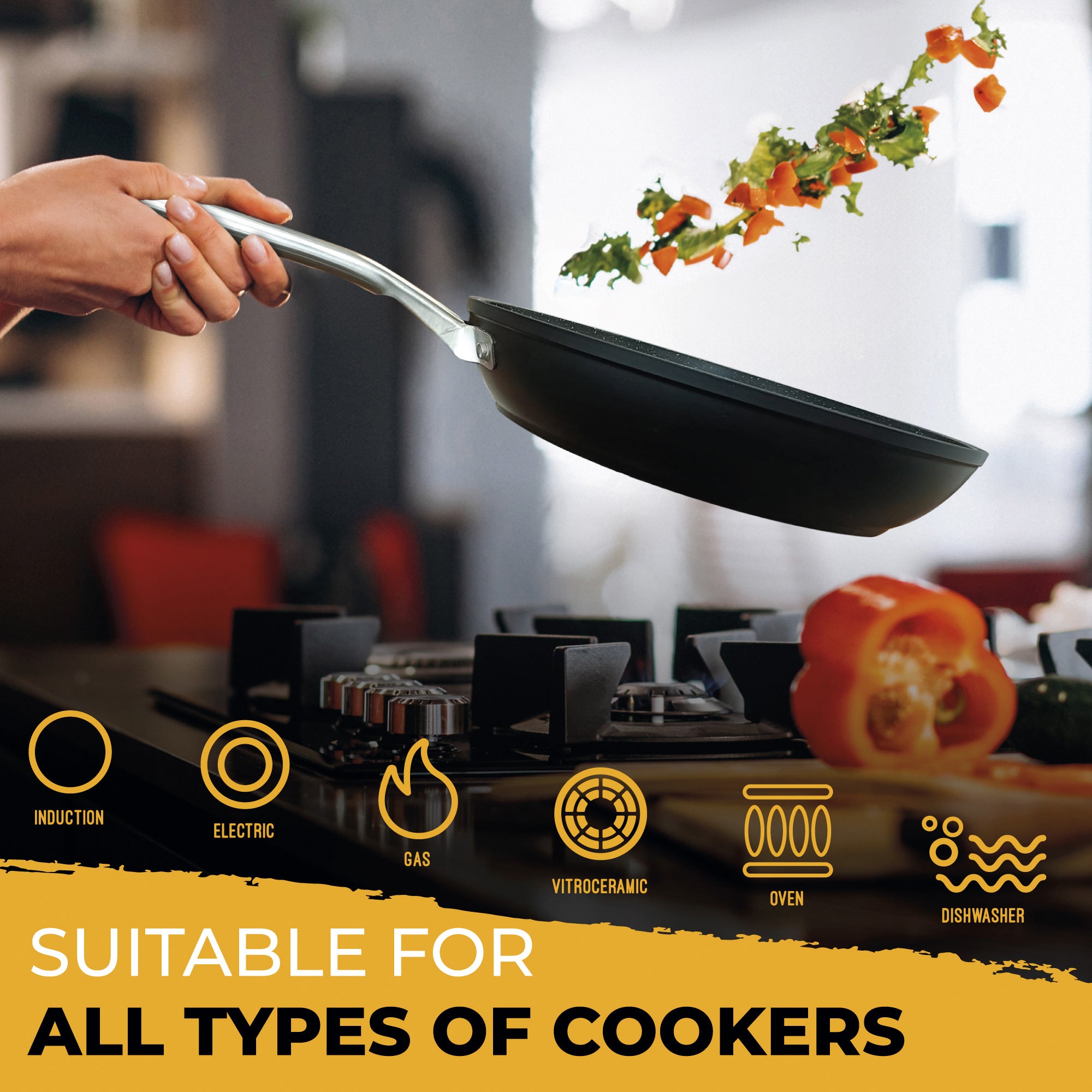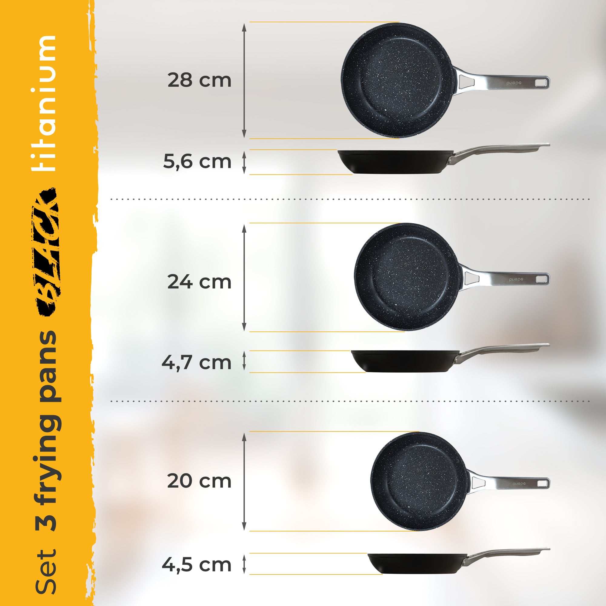 Juego de 3 Sartenes Antiadherentes Inducción Black Titanium Ø 20-24-28 cm