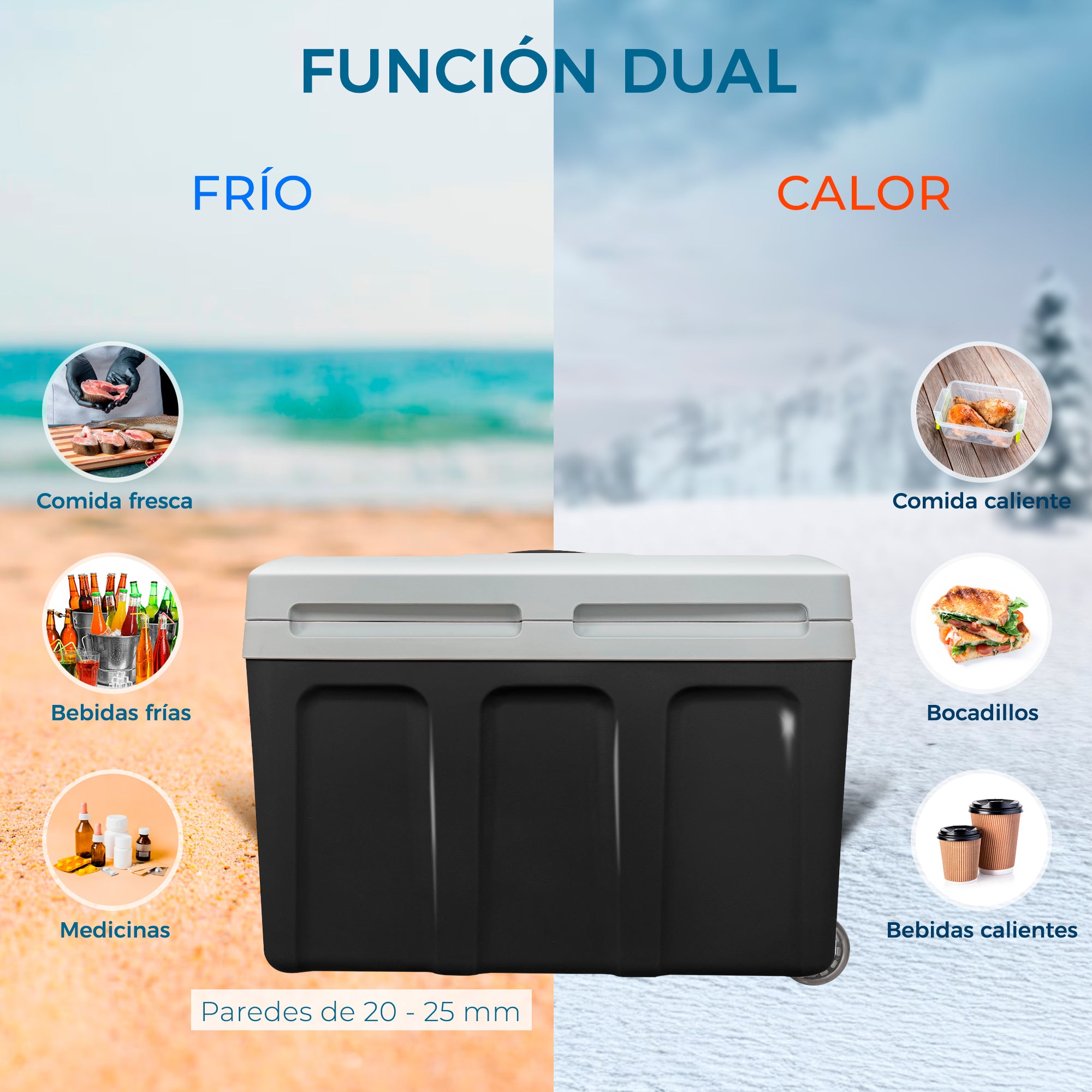 Refrigera o calienta aprox. 22ºC por debajo o por encima de la temperatura ambiente. Perfecta para su uso durante todo el año en el coche, camping, viajes y compras. Te da la posibilidad de estar siempre conectada en los desplazamientos en el coche a 12V y en el destino en la red eléctrica a 220V.