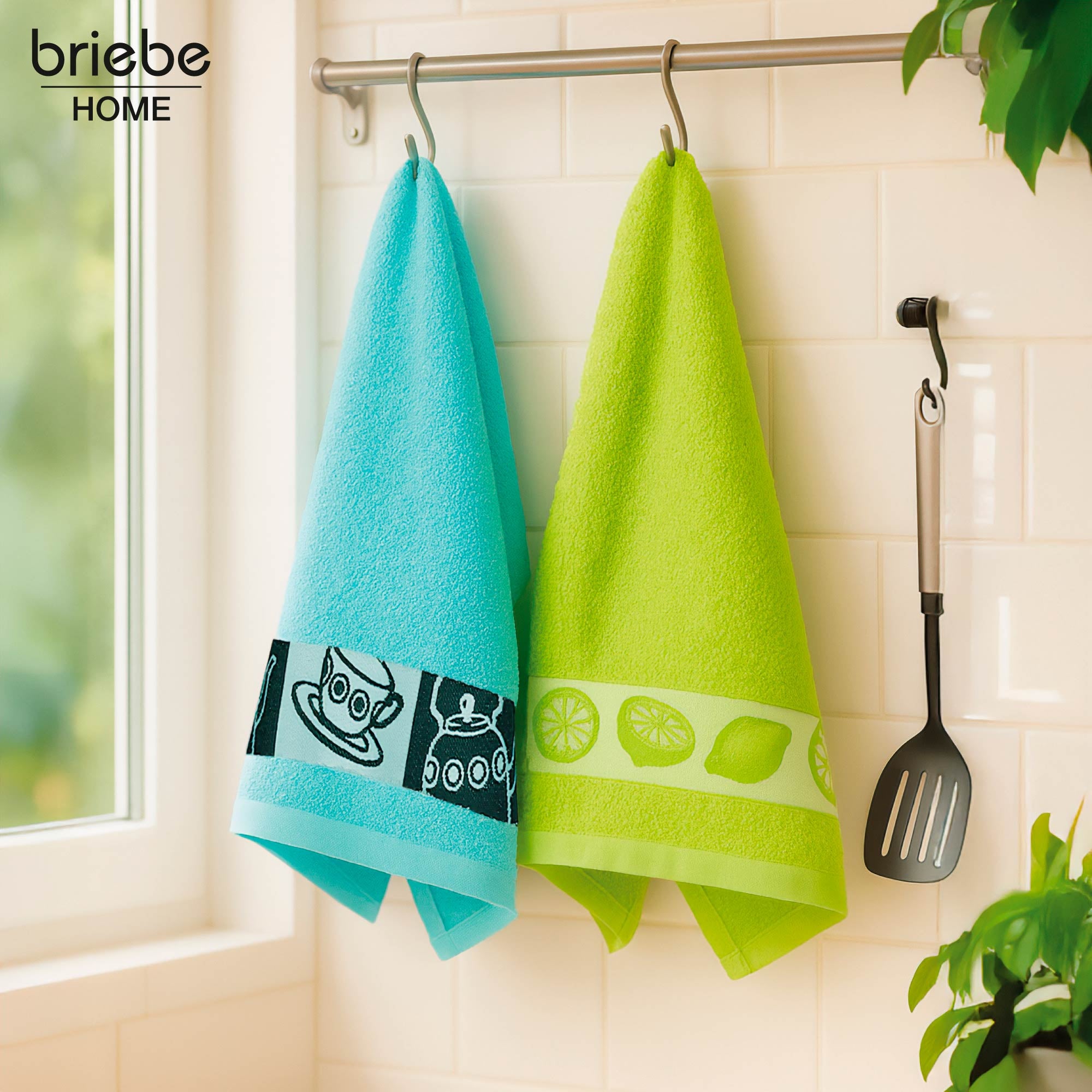 Set de 12 Paños de Cocina briebe Home 100% Algodón Rizo 50X50cm, Alta Absorción y Suavidad Colores Bordados