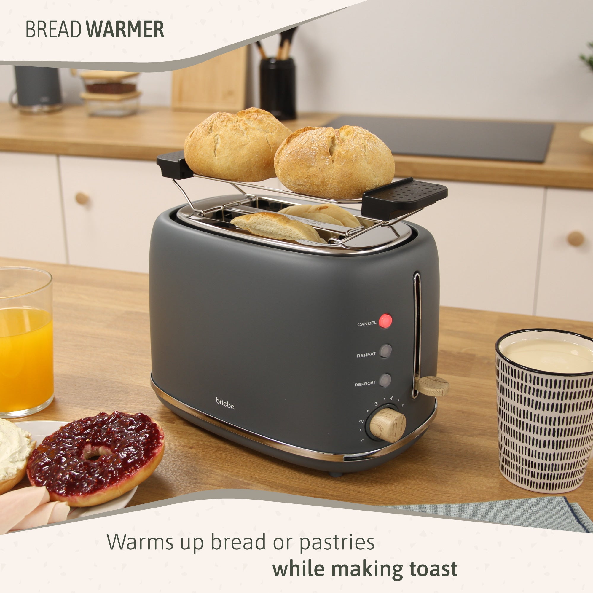 La tostadora briebe Nordic dispone de todas las funciones que necesitas para disfrutar de unas tostadas crujientes y perfectas para ti y tu familia. Puedes aprovechar el calor que desprende el tostador mientras está en funcionamiento para calentar panecillos o bollería como croissants, brioches ...
