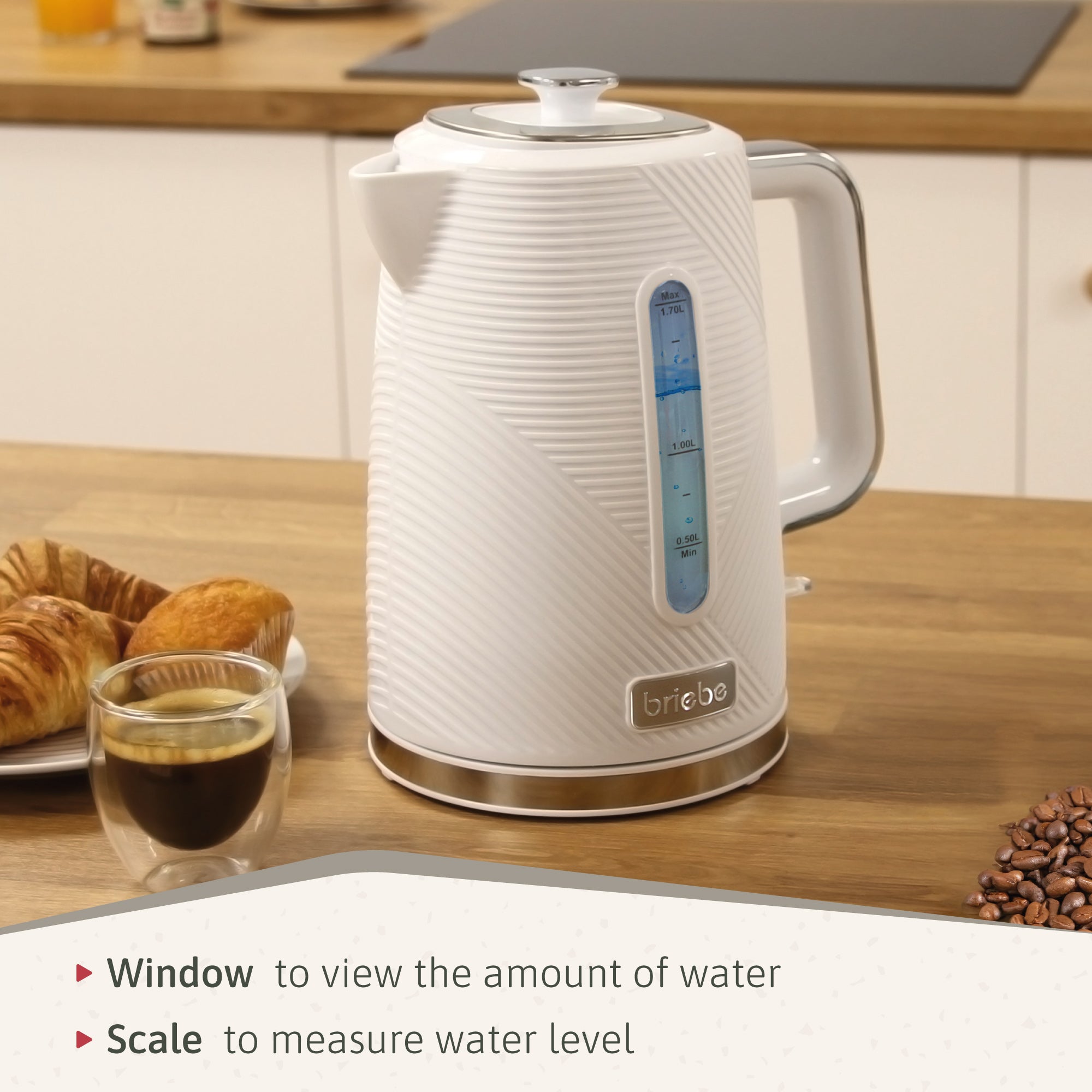 El set briebe Elegance es la mejor opción para tus desayunos compuesto por tostadora de 2 para rebanadas de pan y hervidor de agua eléctrico. Combina diseño funcionalidad y elegancia en cada detalle. Este pack asegura unas tostadas perfectas doradas a tu gusto junto con infusiones té y otras bebidas calientes listas en pocos minutos además se convertirá en un elemento decorativo que realza la estética de tu cocina. ¡No puede faltar en tu casa!
