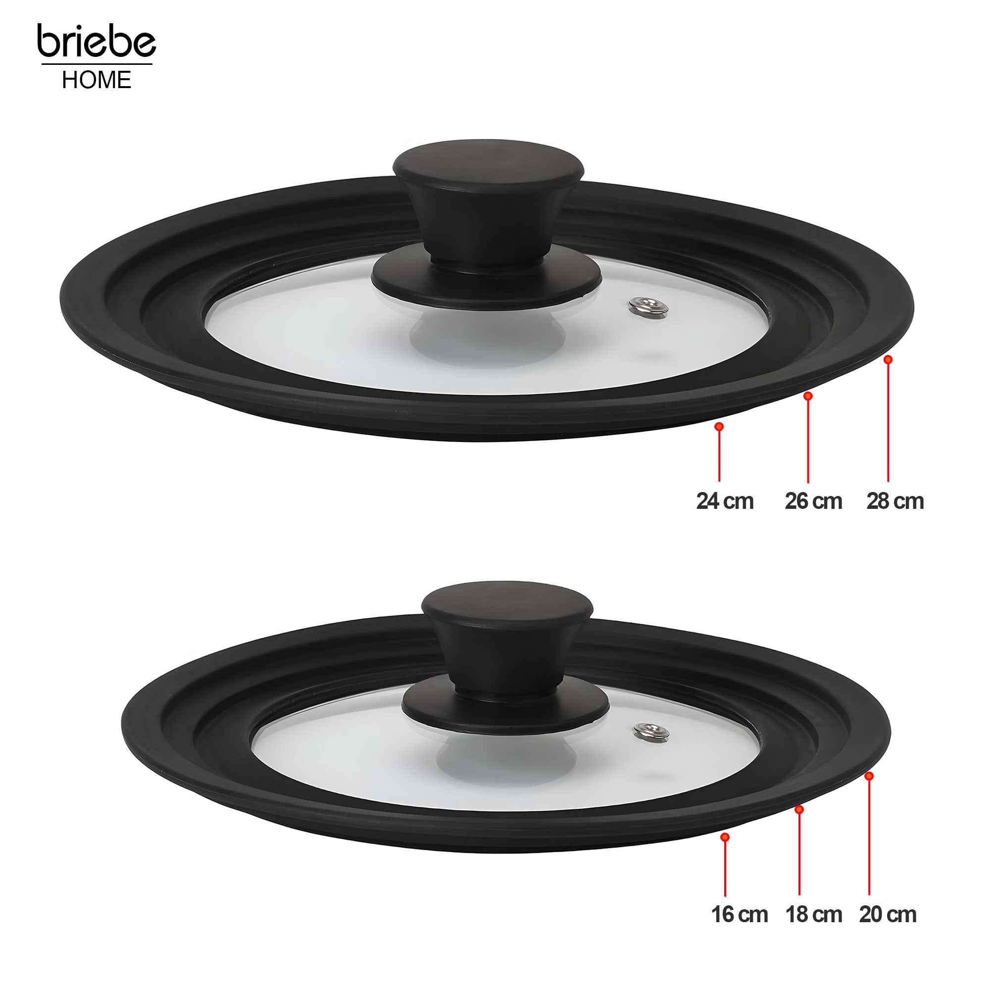 El set de 2 tapas universales briebe está diseñado para adaptarse a 6 medidas de sartenes cacerolas y ollas evita salpicaduras conserva el calor ahorrando energía y optimiza el espacio. ¡imprescindible en tu cocina!