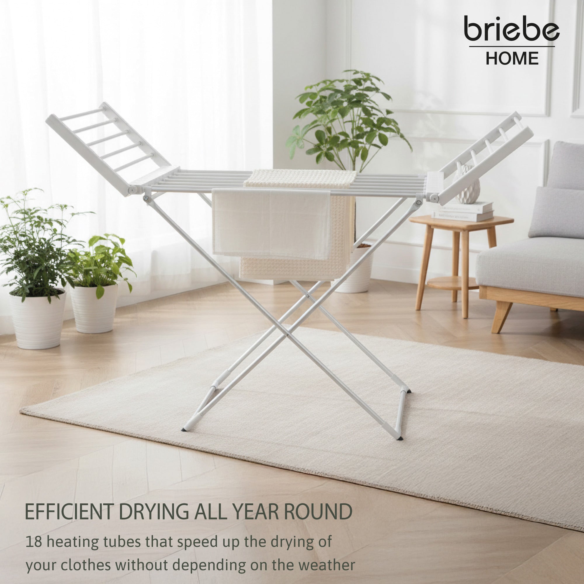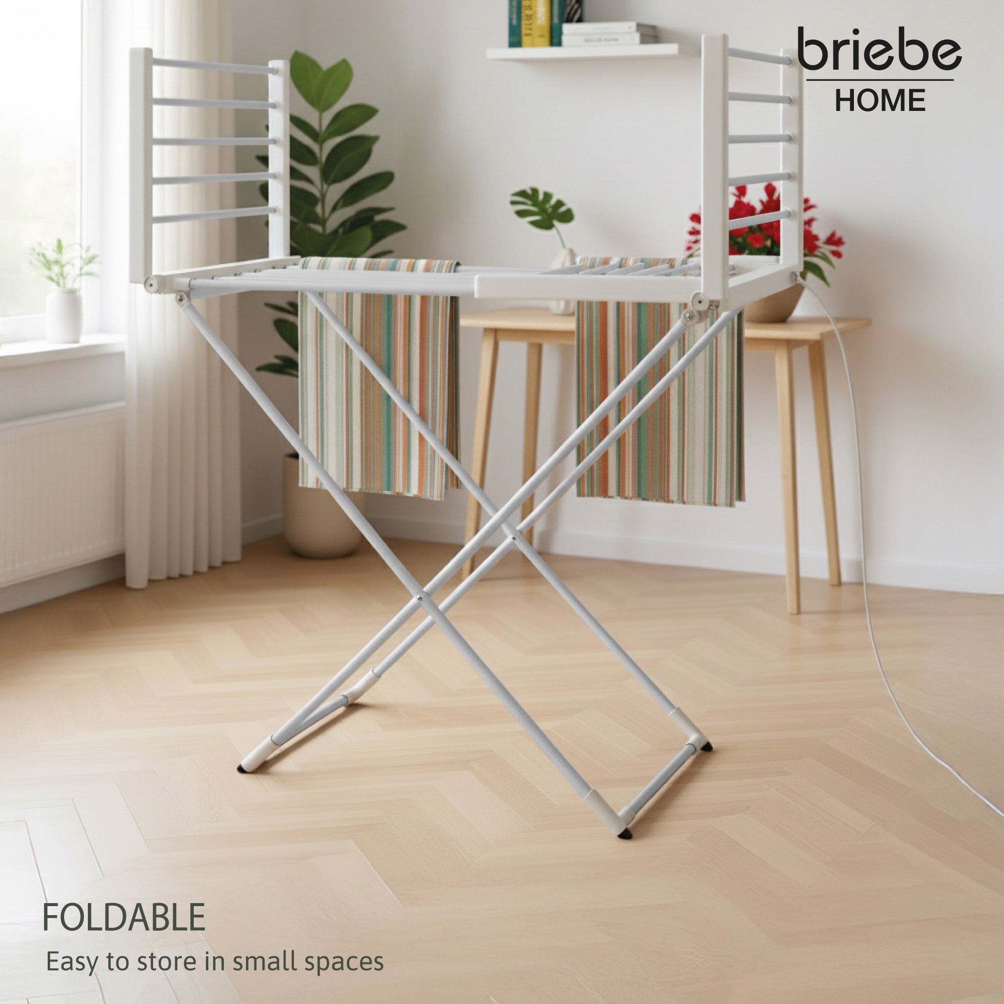 El tendedero eléctrico de briebe hace tu vida más cómoda es perfecto para quienes buscan una solución práctica compacta y económica a la hora de secar la colada de forma rápida sin depender del sol ni del clima. ¡Despídete de los días eternos de espera para que tu ropa se seque!