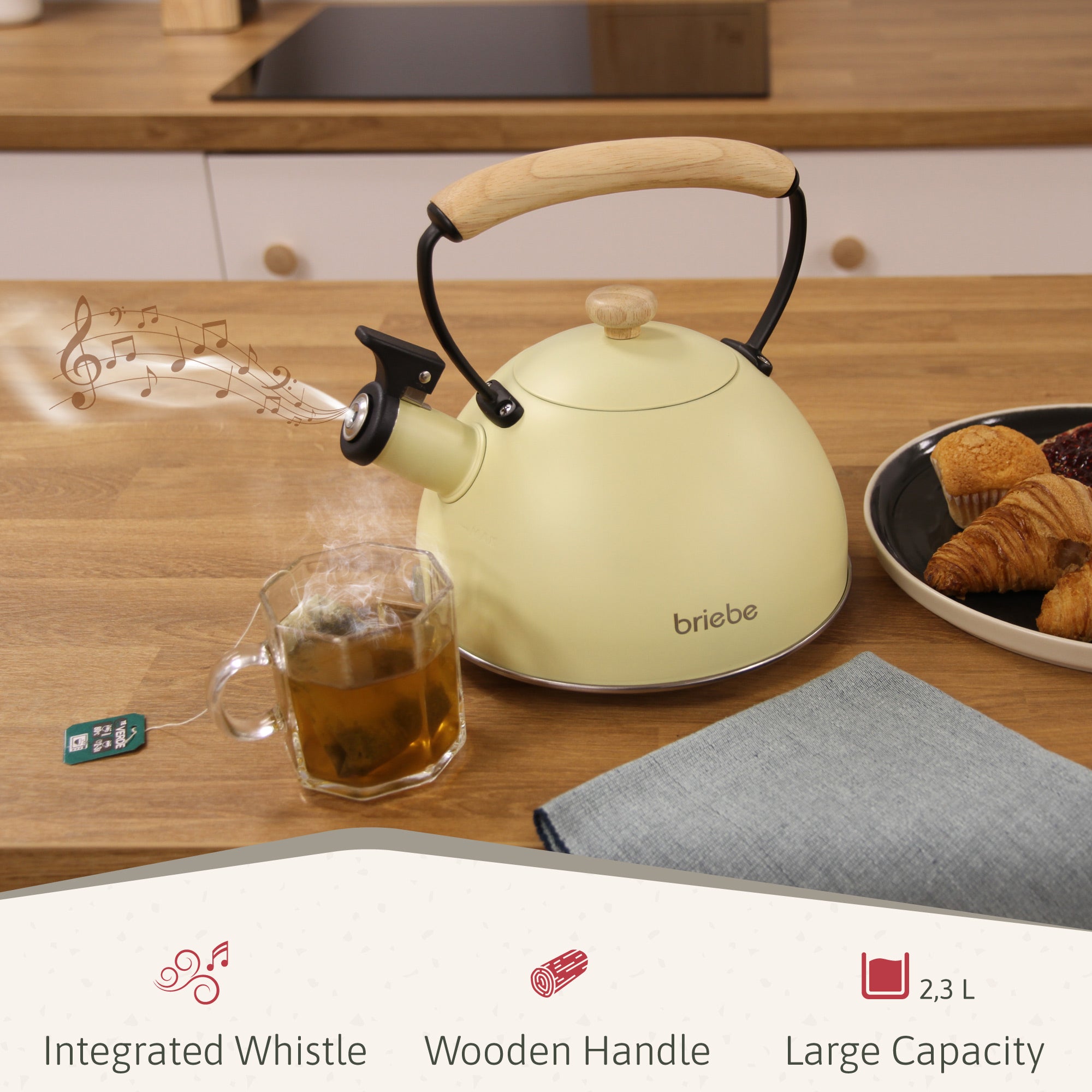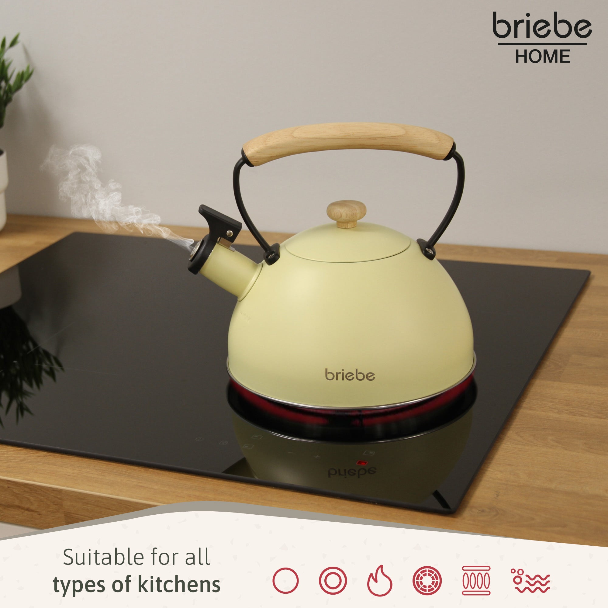 Revive la magia del té tradicional con estilo y eficiencia con nuestra tetera con silbato. Reúne un diseño clásico con procesos de fabricación modernos y materiales libres de BPA. Agua y una fuente de calor es todo lo que necesitas para disfrutar de un reconfortante té o café solo para tí o en compañía con la tetera briebe.