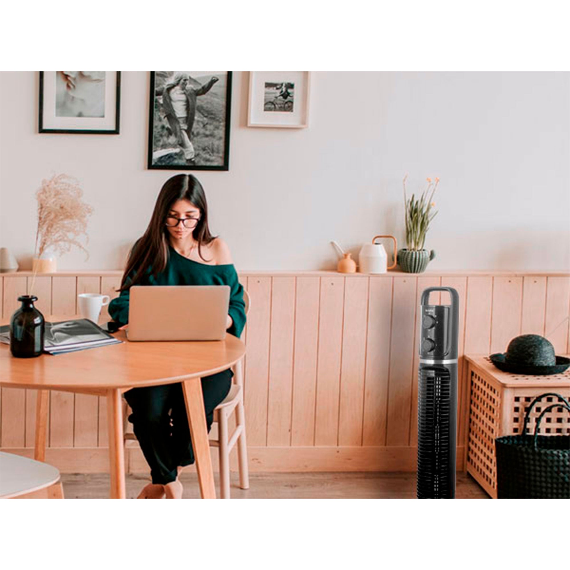 El ventilador de torre briebe es la solución perfecta para mantener tu espacio fresco y cómodo durante los días calurosos sin que la factura de la luz lo note en exceso. Con su diseño elegante y compacto este ventilador ofrece un potente flujo de aire y características ajustables para adaptarse a tus necesidades.
